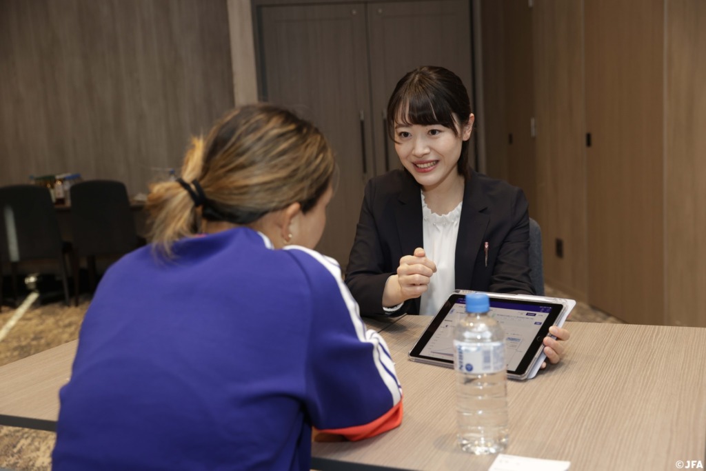 今回の相談会を開催するにあたり、3~4月のなでしこジャパンの活動時に、選手を対象とした金融に関するアンケートを実施。その結果、ベテランや中堅、若手の選手それぞれでお金に関する不安や悩みが異なることが分かり、セミナー形式ではなく、一人一人に合わせたテーラーメイドの相談会形式にすることを決めました。