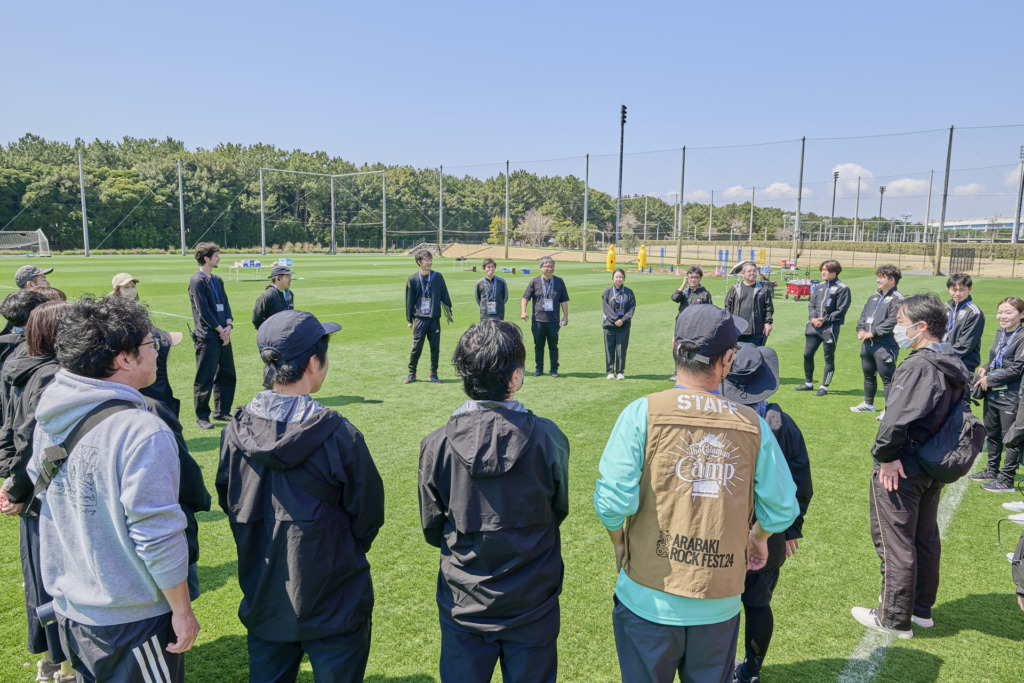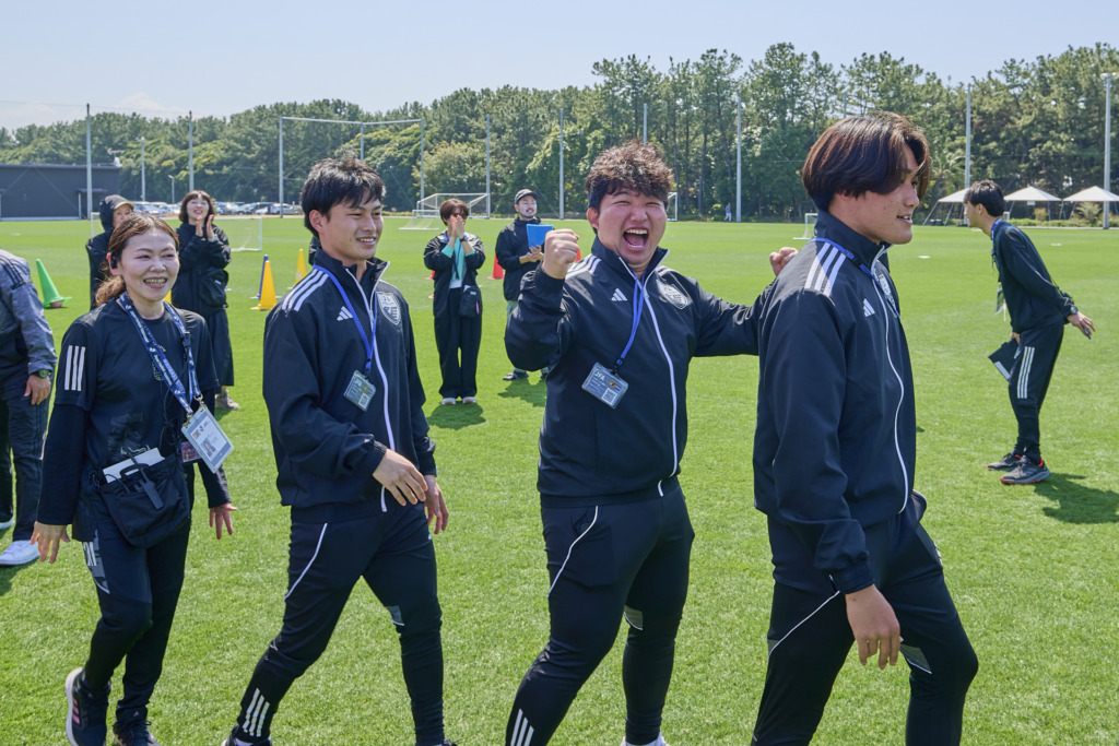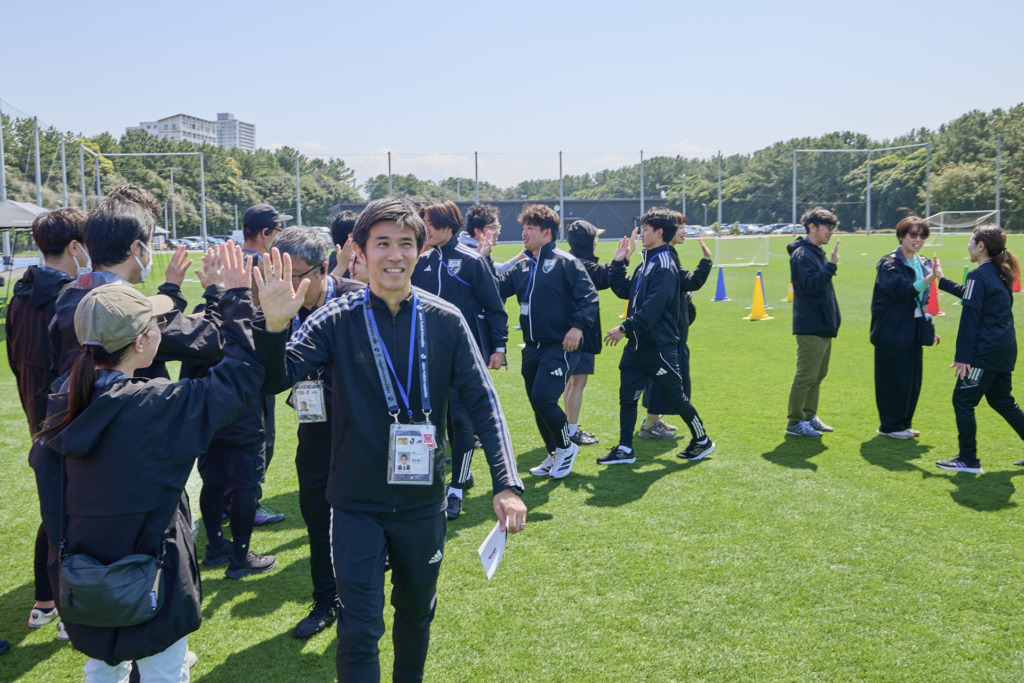 また、今回のイベントはJFAとコールマンのスタッフが中心となって運営しましたが、両社のスタッフの顔合わせとなった準備の時間には、お互いへの信頼とリスペクトを込めて円になり、ハイタッチを交わしながら絆を深めました。サッカーの世界では、挨拶の際に言葉だけではなく握手やハイタッチを行う慣習がありますが、それはスポーツマンシップを誓い合う大切な瞬間でもあります。