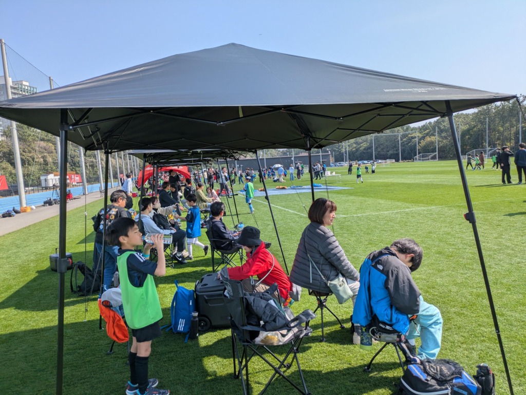 きっかけは、サッカーの試合会場で何気なく使われているアウドドア用品存在でした。子どもたちの試合会場を見渡すと、多くのアウトドア用品が使用されていることに気づきます。